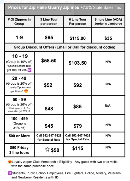 🔹 Experience 3 ziplines that Zip! at Haile Quarry has to offer – $65